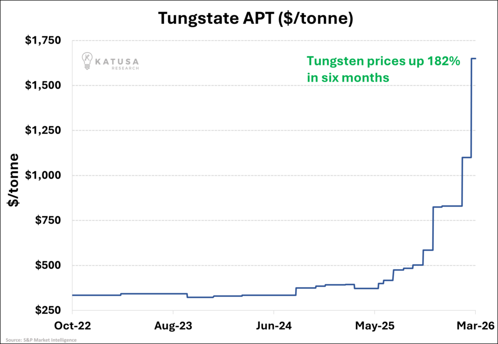 Tungsten prices are screaming and there’s no stopping in site. I’ll have a few articles coming about Tungsten–I think is one of the best setups, outside copper, out there.