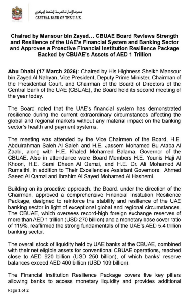 The UAE economy is feeling a bit of a burn. While their reserves are immense, they are now viewing that stable oil profits are not going to return in the near future. The central bank has approved a liquidity package for banks as oil revenue dries up and the aviation and tourism sectors have come to a halt.